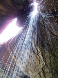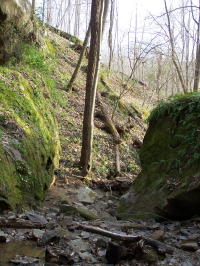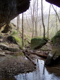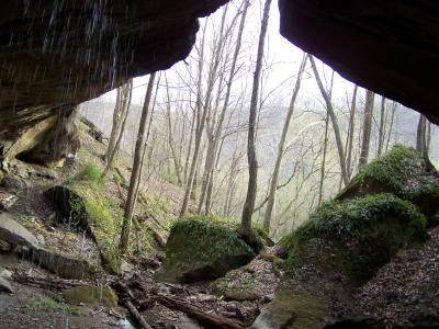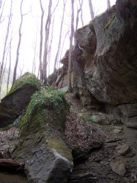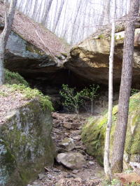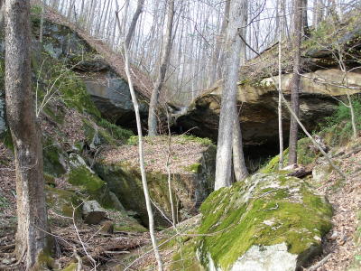 These rocks rest above the West Fork of the Little By Bob Weaver The Calhoun landscape is covered with rock formations, large and small. In some areas the rocks extend for miles across ridge tops, while in narrow hollers the rocks create huge overhangs. Nearly every child born here has a connection to their favorite climbing or hiding rocks, or rock caves into which they crawled for adventure or solitude.