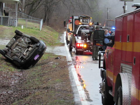 DRIVER ESCAPES INJURY IN RT. 5 ROLL-OVER - Explosion Reported On Road Run |