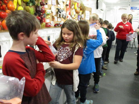 ![]() Preschool through second grade students took part in the "Groundhog's Garden" or "Popcorn Capers" lesson. "Groundhog's Garden" introduced them to the cycle of an entire gardening year: gathering seeds in fall; storing them in winter; planting in spring; weeding and watering in summer; and harvesting crops. "Popcorn Capers" allowed students to learn the history of popcorn, how it grows and how much is consumed. They then did a sink and float activity of different products.