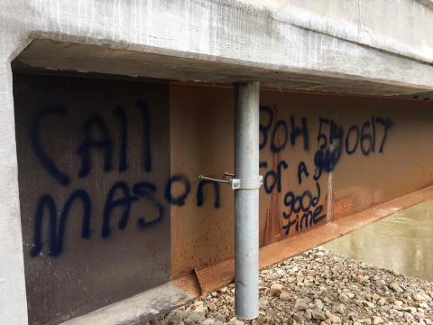 Manager of the WDOH, who provided these photos of the graffiti, about six spots on bridge