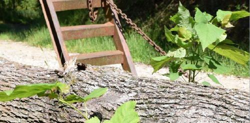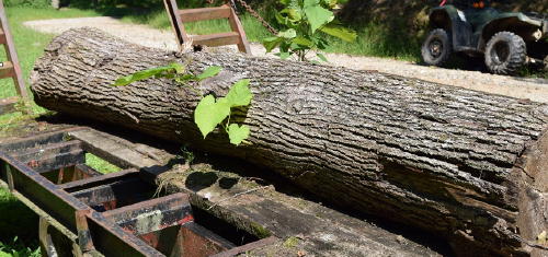![]() Above is a cut basswood log that has been sitting on a trailer beside Crummies Creek Road for nearly four months. In mid-May a giant oak tree crushed the basswood and the butt log was salvaged by the landowner for a trip to the sawmill that has never happened.