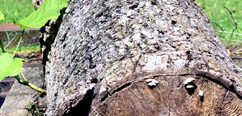 ![]() The bark is peeling off both ends of the log. The sprouting mushrooms indicating the wood is decaying but the sprouts persist. The only source of water for the sustained growth of the sprouts is rainwater that soaked into the bark. It's no wonder mold is growing moldy this summer.