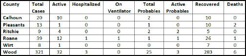 | Parkersburg, WV September 14, 2020 – The Mid-Ohio Valley Health Department announced that Wood County lost another citizen to COVID-19 complications. Our staff extends our condolences to the family. This brings the total deaths in the MOVHD region to nine with six of those in Wood County. MOVHD has been working to make sure our reported numbers are accurate. Numbers have been adjusted for individuals that were transferred out of the region. Many of our cases have recovered recently and have been released from isolation. As of September 14, numbers for our region stand as listed below: