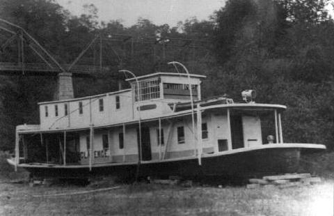 ![]() Built by Charles C. Starcher and named for his son, Judson Clarence Starcher. The gasoline boat was 85 feet long and 16 feet wide. In this photo the "Clarence" was in dry dock at the old Grantsville bridge. An upper deck containing 6 cabins had been added behind the wheel house. It was sold to L.E. Tigner of Parkersburg, who took the "Clarence" to Pittsburgh for the opening game of the Pirates baseball team at Forbes Field in 1915. The trip took 30 hours. Photo courtesy of James C. Haught |