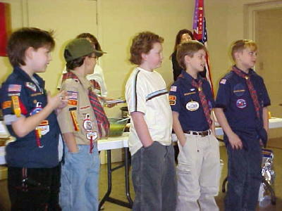 Webelos I & II - Leader Lorri Cunningham recognized Chris Cunningham, Quentin Murphy, Tyler Hicks, Peter Vassilapoulos and Jonah Law