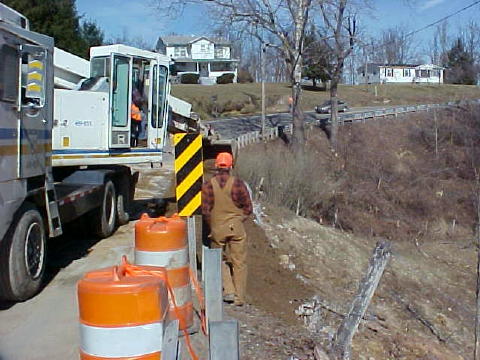 A road slip along Rt. 16 on Mt. Zion Ridge dropped the guardrail over the hill this past week, right up to the edge. State DOH workers repaired the highway by the weekend.