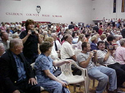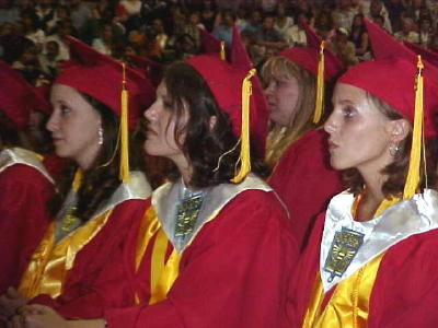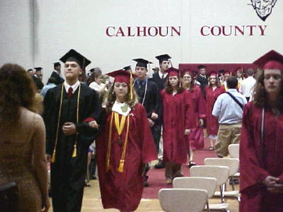 Gym was jam-packed with well-wishers One-Hundred and eight seniors filed into the Calhoun Middle-High School gym Friday night to become the graduating class of 2004. The building was crammed with parents, relatives, students and well-wishers, likely the largest congregation in the county this year. Superintendent of Schools Ron Blankenship accepted the class for graduation. He and school board President Rick Fitzwater issued the diplomas.