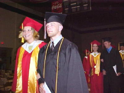 Marching on to life after high school Principal Mike Offutt said all the graduates made it to the event, although one was late. School was canceled yesterday because of local flooding and some roads were closed. It was the 80th commencement exercise for the school. Calhoun High was originally built in Grantsville as a "county school" and was moved to Mt. Zion campus six years ago to the multi-million dollar complex. The class Valedictorians, Zachary Houchin, Chelsie Hupp and Barbara Shock addressed their class, in addition to Salutatorian Victoria Lamont. Besides challenging the class members, much of the evening was spent remembering the years together with a "Memories" program projected on the gym wall. Principal Mike Offutt announced about $775,000 in scholarships, saying about half of the senior class has indicated they are going ahead to a four-year college and about 20% to a two-year college. (The scholarship recipients and other awards will follow in the Herald) A instrumental version of the National Anthem was played by Shaun Hilligas and Brandon Sampson, the CCHS Choir under the direction of Faye Chambers sang "Our Friends" and Derek Roberts and Tyson Price delivered a song dedicated to class member Cindy Ann Self, who was killed in a car accident. The Calhoun Middle-High School band under the direction of Harry Beall delivered an upbeat "Dawn of a New Day." The graduates of 2004: Justin Matthew Ashley, Jacob Daniel McCumbers, Kelly Renee Badgett, Dennis Lee McCune, Zachary Ryan Bailey, Ricky Joe McCune, Tiffany Renee Barr, Dennis Lee McKay, Chasity Nichole Bell, Denzil Lee McKay, Jr., Teresa Lenore Bell, Amanda Jean McNish, James Forrest Blankenship, II, Eric Douglas Metz, Justin Kent Boatright, Kelly Dawn Metz, Christopher Adam Boone, Crystal Lynn Miller, Ryan Andrew Bremar, Kristopher Mark Miller, Shannon Marie Brown, Chad Andrew Moore, Holly Anne Burch, Holly Lynn Moss, Joshua Keith Burkett, Shanon Lee Nelson, Zachariah Jeffery Carpenter, Joshua Brown Nichols, Brittany Nicole Church, Timothy Ryan Noggle, Christopher Dallas Cox, Melissa Gayle Oshoway, Marcus Anthony Davis, Samantha Jo Parsons, Debra Renae Dawson, Katie Renee Perkins, Kevin Scott Deweese, Michalle Renea Perkins, David Allen Dodd, Jeremy Dewain Poling, David Wayne Eagle, Tyson Lee Price, Cecil Harold Farrell, Alicia Dawn Richards, Ryan Scott Fitzwater, Mellisa Dawn Richards, Tonya Marie Fought, Ryan Matthew Richards, Brandon Lee Gainer, Britney Layne Riddel, Chasity Marie Garrett, Jeffrey Wayne Riggs, Ashley Danielle Godfrey, Zeb Ryan Ritchie, Tanya Elaine Godfrey, Derek Keith Roberts, Kyle Lee Good, Steven Ray Rogers, Amber Marie Goodrich, Brandon James Sampson, Danielle Brooke Goodrich, Christopher Mark Sampson. Michael Lee Grogg, Kelley Brooke Sampson, Jonathan Paul Hall, Stacy Lynn Sampson, Matthew Ryan Hall, Edward Allen Scott, Tiffany Brooke Hall, Barbara Christine Shock, Kacy Michelle Harris, Teresa Ann Siers, Melissa Ann Hartshorn, Joshua Lee Simmons, Shawn Eugene Hillegas, Erica Leigh Smith, Terra Michelle Holbert, Christy Nicole Stalnaker, Miranda Ann Houchin, Judy Marie Starcher, Zachary Lee Houchin, Jonathan Scott Stephenson, Chelsie Ranee Hupp, Brittney Ray Stevens, Katie Jo Hupp, Susan Renee Sullivan, Shane Duval Ingram, Jr. , Cristy Leah Thomas, Zachary William Ingram, Stephanie Lynn Wayne, Daniel Mark Johnson, William Glenn Weaver, Nicole Allyn Kelley, Deborah Leigh White, Christy Ann Kirby, Joshua Lynn White, James Thomas Kirby, Amber Michelle Williams, Victoria Louise Lamont, James Holly Williams, Amber Nichole Lamp, Michael Paul Wilson, Shaun Michael Laughlin, Matthew David Worf, Christopher Delano McCormick, Sierra Dawn Wriston, Brittney Jane McCoy, Kevin Wayne Yeager, Jr. |