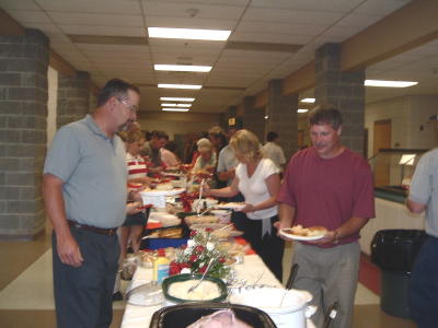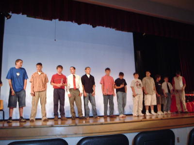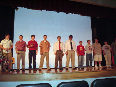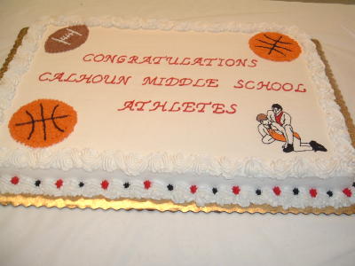 | Calhoun Middle School Boosters held a banquet on May 22 for all Middle School sports teams and participants. Irona Yeager welcomed team members, parents and coaches, Paul Funk gave the invocation. There was a PowerPoint presentation given honoring the eighth grade athletes. Mr. Garza spoke to the teams and trophies were awarded. Middle School Coaches are, Richard Welch and Jeff Houchin - Football; Lisa Walker - Girls Basketball; Mike Sims and Jeff Houchin - Boys Basketball; Elvin Hixon and Dale Clark - Wrestling. "I would like to especially thank all of the parents for providing the dinner and for all the help preparing for the banquet and cleaning up afterward," said Irona Yeager. "Also to Becky Hanshaw for making the cake for the kids," she said. Photos courtesy of Irona Yeager