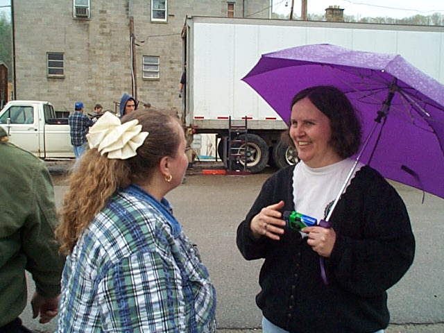 Michele Smith (L) and Sue Covell (R) help with clean-up