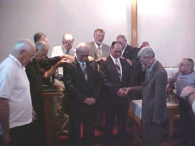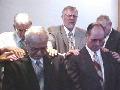 ![]() Dozens of church deacons and leaders from around Calhoun came to the ordination of Larry Morton (left) and Daniel Heiney (right)