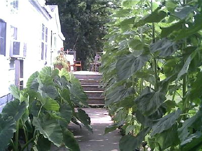 | Ed and Barb Tingler live at Big Springs, West Virginia. They call their home "Tingler Mountain" a fitting name for the beautiful pastoral land and hills that surround them. Sunflowers are a favorite of the Tingler's, along with Elephant Ears and other plants. A blend of sunshine and shade make the 'Mountain' a haven of tranquility. "We feel very fortunate to live on our 'Mountain' and although the sunflowers have now started to bend over from their weight, they are still beautiful," says Barb. Our readers are invited to visit "Tingler Mountain," in this pictorial. Photos by Barb Tingler