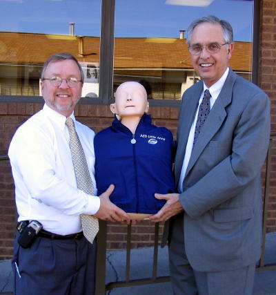![]() L to R: Bill Ellis and Daniel Wharton Daniel B. Wharton, Board member of the National Automobile Dealers Association, presented a Little Anne AED training unit on behalf of the National Automobile Dealers Charitable Foundation to Bill Ellis, Director of Emergency Services of Minnie Hamilton Health Care Center. The Charitable Foundation provides up to twelve CPR training units throughout West Virginia annually. In accepting the CPS training unit, Mr. Ellis said MHHCC had set a goal to train at least 500 persons in 2005. The CPR unit gives signals telling when the trainee is applying the right pressure in the right spot or breathing correctly into the victim's mouth. With the training, the students learn the "feel" of giving quick lifesaving emergency treatment. The National Automobile Dealers Charitable Foundation is part of the National Automobile Dealers Association with headquarters in McLean, Virginia. Its membership includes over 19,000 franchised new car and truck dealers in the U.S. MHHCC is honored to receive this donation and is looking forward to utilizing the Little Anne training unit to reach their goal of 500 individuals trained in life-saving CPR. If you or your organization would like more information in setting up or attending a CPR training, please contact Bill Ellis at 354-9244, ext 167. Remember, you don't have to be a Healthcare Professional to save a life!