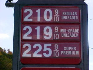 ![]() Gasoline prices at Calhoun outlets reached $2.11 a gallon this week for low test. Crude oil has reached an all-time high of about $54 a barrel. Gasoline struck $2.79 a gallon in San Francisco yesterday. "I think it's safe to say prices will go higher before they go lower," said Paul Gonzales, a spokesman for the Automobile Club of Southern California. "It's impossible to say how high and when it will reach its peak." |