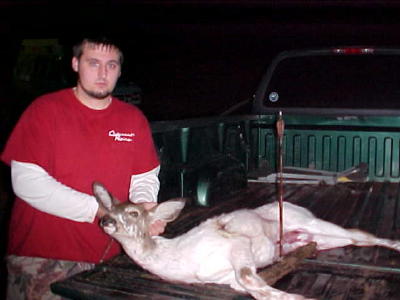 Kenny Mace of Chloe killed this albino deer on Rowels Run near the Village of Hur just before dark Saturday. The button buck was killed with a bow.