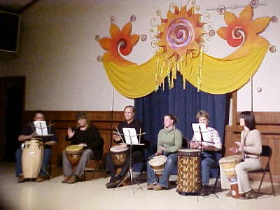 ![]() Percussion Discussion lifts the rafters of Barbara's Room There were outstanding performances by Heartwood's Dance Teams throughout the evening, with drumming by Michael Franek and students from his Fall Percussion Class.