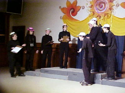 The acting class gave a high-energy comedic performance of Harry Gile's Who's On First? made famous by Abbott and Costello, but for this event was arranged by Jude Binder for ensemble performance.