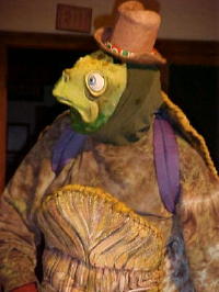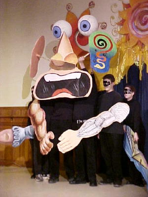 Kendall, a Calhoun native, is an illustrator and animator for Cartoon Network whose work can currently be seen in the cartoons Kids Next Door and Pepper Ann. He resides in Brooklyn with his wife Julie Peppito, a Heartwood resident teacher who created The Sunbird for the Wood Festival in 2001. Her artwork was featured as a backdrop for the Celebration. Guests of the December Celebration were greeted by Welcome Masks worn by Heartwood students. There were exhibits of many of the beautiful masks made by students of this program and previous programs as well as an exhibit of the artwork of the young students in Heartwood classes. The December Celebration was a fund-raiser for Heartwood. Money helps to pay expenses to operate the non-profit school for the arts. For more information about Heartwood, check their website at www.heartwoodinthehills.com