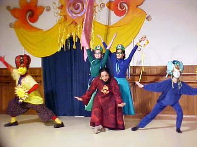 Masks, music and dance ... A highlight of the celebration was a presentation of the Acting Class called "Ears, Eyes, Legs, Arms" a musical romp written and directed by Heartwood Artistic Director Jude Binder.