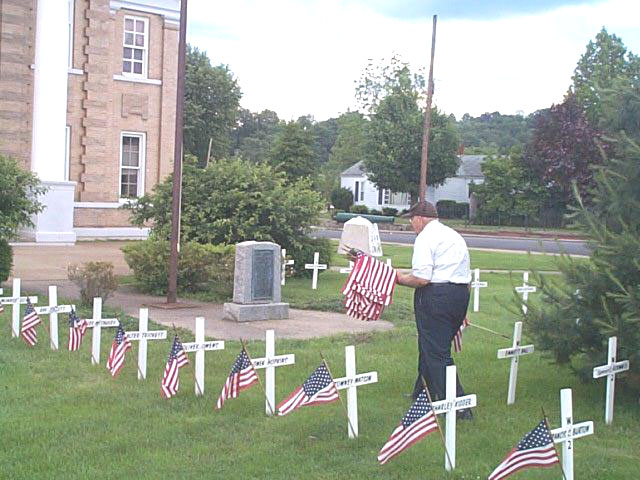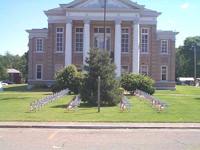 The Wirt County Court House lawn decorated for Memorial Day (Courtesy of John Griffin 2001)