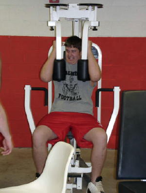 The CCHS strength and conditioning program started in the spring of 2000. Since that time, student athletes have seen the program grow and change. It is one of the most successful programs in the area. Currently there are 37 student athletes participating in the after-school program. The weight room is housed in the facility building near the Red Devil stadium and locker rooms. This year several lifters participated and placed in a power lifting competition at Glenville State College. The obvious advantage of the strength and conditioning program is increased athletic performance and a resistance to injury and fatigue. Coach Bryan Sterns supervises the program and welcomes all student athletes to participate. Courtesy of Calhoun High School