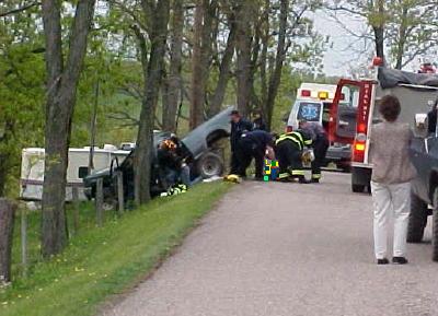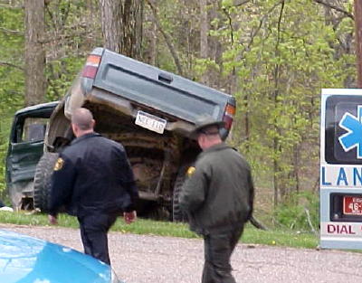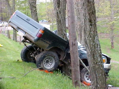 Truck wraps around tree, tree trunk goes through passenger side of cab Calhoun's second highway fatality of the year is a 15-year-old Millstone youth. Randy Brannon, a Calhoun High School student, died shortly after a truck in which he was riding struck a tree on rural Sycamore Road, one-tenth mile from State Route 16. The accident happened abut 4 p.m. Thursday. Emergency personnel performed CPR on Brannon, in an attempt to revive him. Brannon is the son of Carl and Judy Brannon of Millstone, who have been associated with emergency services in the county for several years. The driver of the truck, Jonathan Roberts, 14, of Millstone, was life-flighted to Charleston Area Medical Center by HealthNet chopper. Family sources said he is in ICU, suffering from "some spleen and liver damage," although his condition was not described as critical, he reportedly does have serious injuries. The accident was reported by a Calhoun school bus driver. Calhoun EMS dispatched two ambulances to the scene, with the Arnoldsburg VFD responding. Trooper 1st Class Jeff Hunt and Chief Deputy Ron Bandy are investigating. Brannon's body is at Stump Funeral Home where arrangements will be completed. |