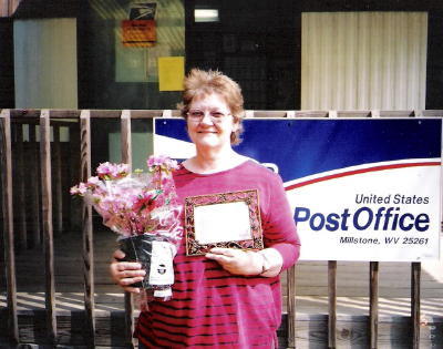 ![]() Hall wrote about a very special lady in her life - Velma Barnes (pictured above). Postmaster Bev Mullins said Ms. Barnes was notified last Friday, and Mullins presented her with the framed letter and some flowers. "It was a very hard job selecting the best essay," said Mullins. "I appreciate the time and effort people put into the project." The other letters were returned so they could be presented to the respective mothers. |