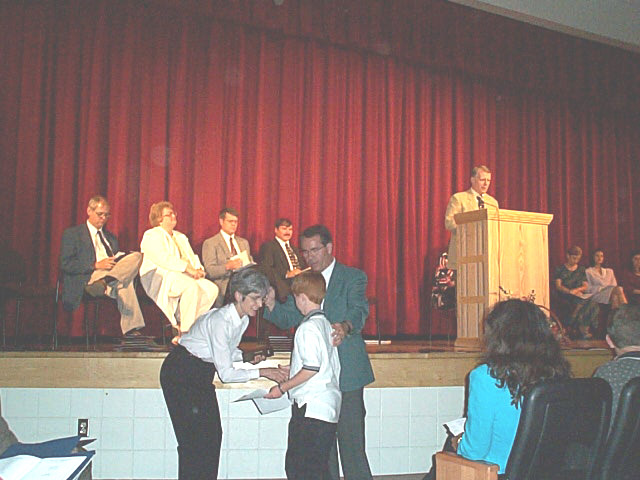 ![]() Superintendent Ron Blankenship and board member Jaunita Berdine present awards