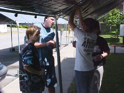 Youth workers helping to erect tents |