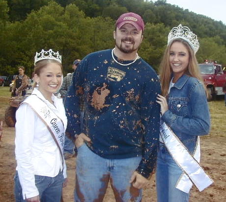 2005 Queen Flora, Casey Westfall (left) Miss Wood Festival 2005 Kristin Terry (right) with Calhoun Mud Bog participant at Thursday night's event
