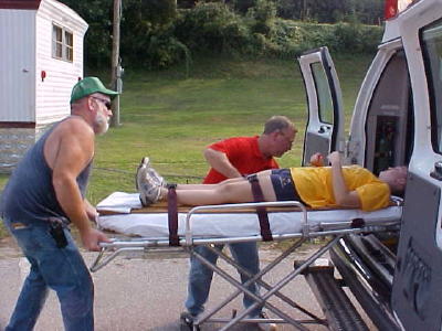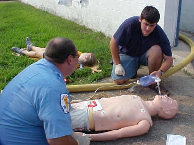 It was a meth lab explosion. Something not thought of a few years ago, but now a possibility with the epidemic of meth manufacturing. A mock disaster drill for training purposes was conducted yesterday evening at the now closed Grantsville swimming pool. The Grantsville VFD, Calhoun EMS and Minnie Hamilton Health Care Center participated in the mock disaster. Bill Ellis of Minnie Hamilton Health Care said there were four victims of the blast, rescued, treated and transported to the local center. Calhoun EMS Director Josh Johnson arrived on the scene, saying "I'm grateful we decided not to use bunker gear for the exercise," with the street temperature at 100 degrees.