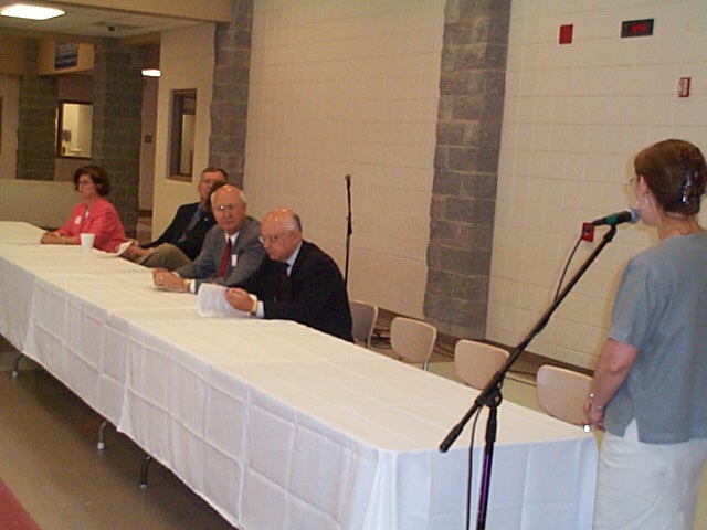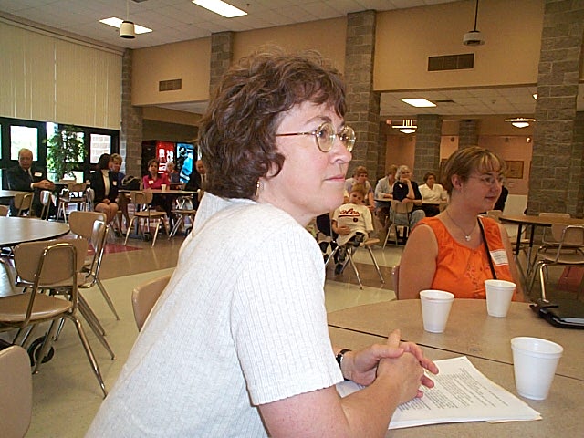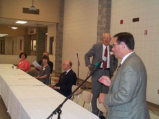 Public forum held in "Commons." Several educators addressed the body on issues from not enough planning time in elementary schools to a need to have more instructional days during the school year.