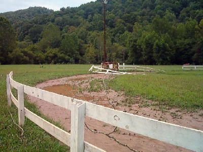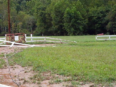 The West Fork Riding Club at the intersection of Oka Road and Rt. 16 at Chloe was heavily damaged by Monday's flash flood. The club has canceled their show this Saturday, September 3, because of the damage, according to Crissy Johnson.