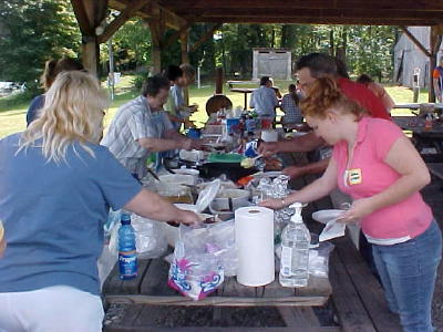 (L to R) Helen and Don Johnson and Marvin and Peggy Stemple The Stemples of Calhoun came from Preston and Barbour County areas of the state. Issac Stemple came to Calhoun in the 1800s. His son Ahab married Mary Carpenter in 1850, his original log cabin still stands just off Rowels Run. They were parents of eleven children. A reunion of several descendants was held Sunday at Calhoun Park.