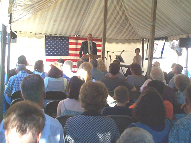 School. The revival is being held by the Victory Baptist Church. A week-long "Turning America Back to God" tent meeting opened last night with Dr. John Powell, a former Sand Ridge native and graduate of the CHS Class of 1955. Dr. Powell said it was rewarding for him to return to his native county and carry the message. A large crowd attended the first meeting, which was opened with a prayer by Sheriff Allen Parsons and a welcome by Pastor Mike Worf. The featured music was by the Hickman Family. The revival will continue nightly through Friday, starting at 7 p.m.