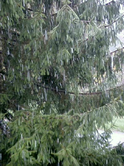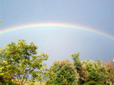 ![]() (Photo by Phyllis Kirby) During the past 24 hours, the weather has gone from rainbows to snow - the first falling snow of 2005 this morning. Yesterday afternoon, there were showers and sunshine, creating this rainbow in the Village of Hur, and causing sleet and freezing rain to fall in Spencer. Maybe, the overdue fall weather is here, a fall that has been deprived of a frost, surely to come. The dry weather has also caused the autumn leaf spectacular to be dim and grayer than usual. Snowfall accumulations between 6 to 8 inches were reported in areas from Morgantown to Terra Alta, causing power outages and school closings. About 2 inches fell in Clarksburg, while southern counties, including Kanawha, got rain.