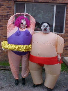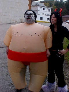 ![]() 2005 - Floating around the streets of Grantsville Friday, were a couple of slightly obese characters and their sidekick who likely won prizes and recognition at the Senior Center's Halloween party |