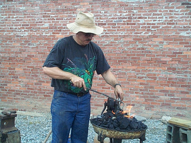 A blacksmith at work The festival concludes on Sunday morning with service and singing at the historic Job's Temple on Route 5.