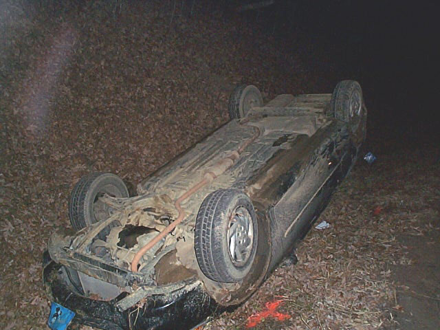 away from the auto which crashed on its top about two miles north of