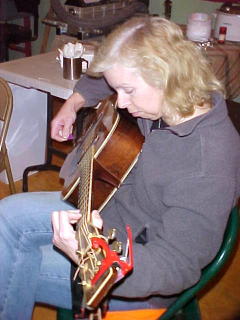 The Calhoun County Kitchen Band (L to R) Melanie Degen, Fiddler Jake Krack was in from Berea College for the holiday weekend to meet up with his famous mentor Lester McCumbers, who with a number of other band members had a lengthy jam session, interrupted by a serving of chili and other goodies. Krack, a graduate of Calhoun High School, has received dozens of honors for his fiddle playing these past years, and has performed at such venues as the Prairie Home Companion to the Kennedy Center. He has released several CDs of his music ... see www.jakekrack.com