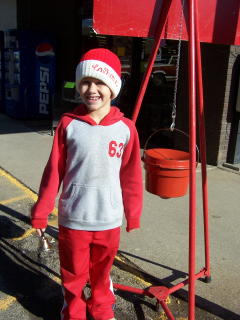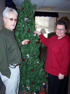 Ringing the bell for the less fortunate (left) Mike Ritchie and Brenda McBride creating the Senior Center's Christmas tree (right)