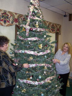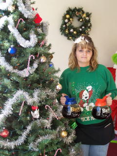 ![]() Mary Reed does the lobby tree at DHHR (left) and the Koffee Kup is decorated from top to bottom (with lots of coffee available)