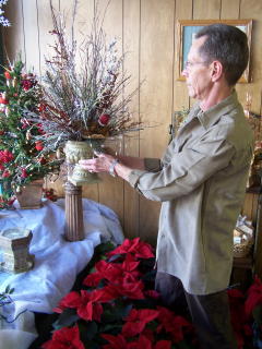 ![]() Calhoun Banks always takes pride in their "lobby tree" (left) while Charlie Whipkey performs his magic at his new shop (right)