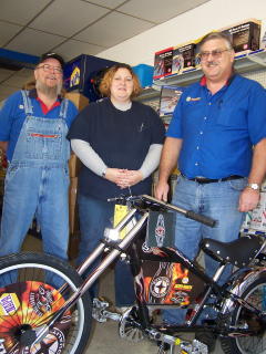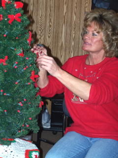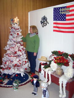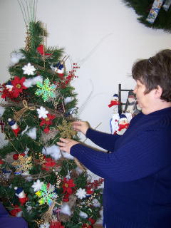 ![]() The NAPA folks gave away this great bike (left) while Michelle Goodrich (next door) places a final ornament (right)