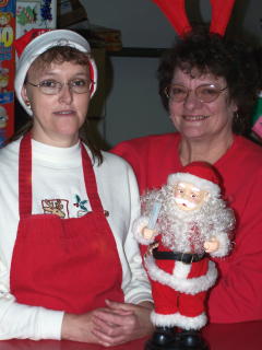![]() Nancy Ritchie at Pursley's Furniture has the best window decor (left) and the library ladies, Amy Cooper and Lisa Walker, have a few laughs (right)