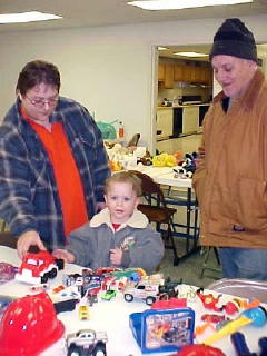 These little guys had a large selection of toys before them About 85 kids turned out at the Upper West Fork Park Tuesday evening for the toy give-a-way organized by Calhoun EMS and Sheriff Carl Ballengee. Last night the give-a-way was at the Grantsville VFD. The organizers are expressing their thanks to the many folks who donated toys, cash and food to the project. |