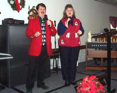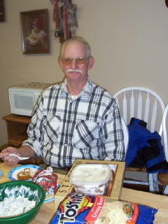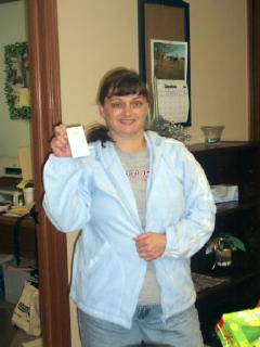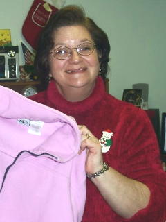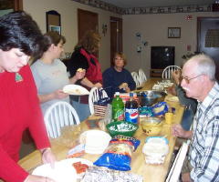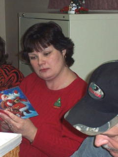 ![]() (L) Head Cook, Ellen Shock showing her new jacket, received during the gift exchange (R) Driver Roy Pursley got around on "4 wheels" since breaking his leg at work last week