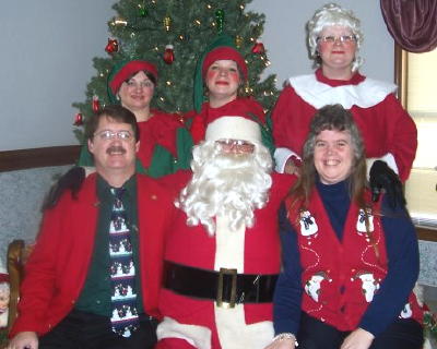 David and Shelia, of Spencer, with Santa, Mrs. Claus and elves