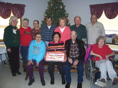December Birthdays celebrated at the Senior Center (Front L-R) Virginia Neely, Clarice Whytsell, Woodrow Whytsell, Leota Swiger (Back L-R) Evelyn McCormick, Jean Miller, Mary Nichols, Jim Myers, Patsy Bowers, Kenneth Godfrey and Joshua Scott