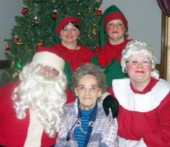 ![]() Santa, Mrs. Claus and elves visit with Fumiko Welch Calhoun Senior Citizens were visited by Santa, Mrs. Claus and a couple of elves, during the recent Christmas celebration. A photographer was on hand to capture the event at the CCCOA Senior Center in Grantsville.